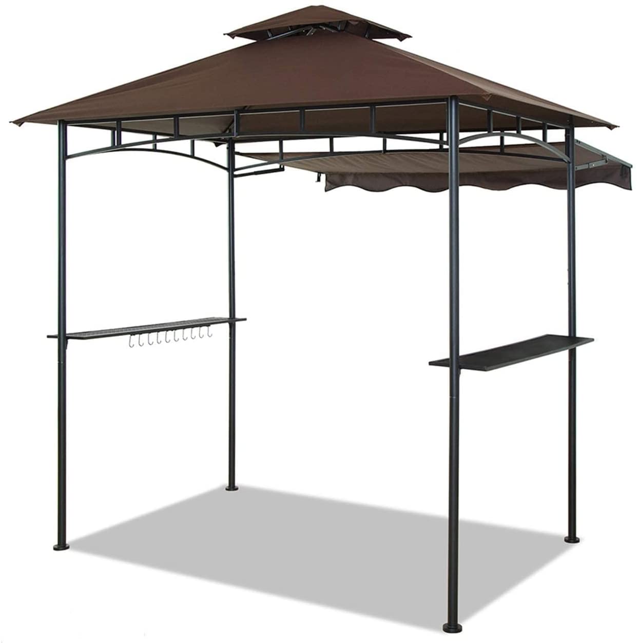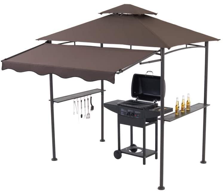 CHARMELEON Double Tiered Grill Gazebo 11X 5, Outdoor BBQ Patio Canopy Tent with Stretchable Side Awning (Brown)