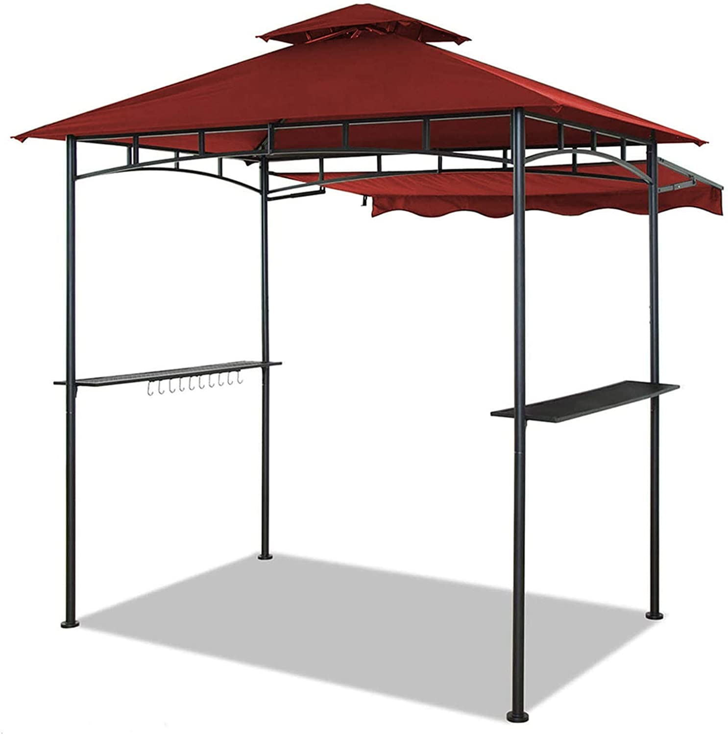 CHARMELEON Double Tiered Grill Gazebo 11X 5, Outdoor BBQ Patio Canopy Tent with Stretchable Side Awning (Burgundy)