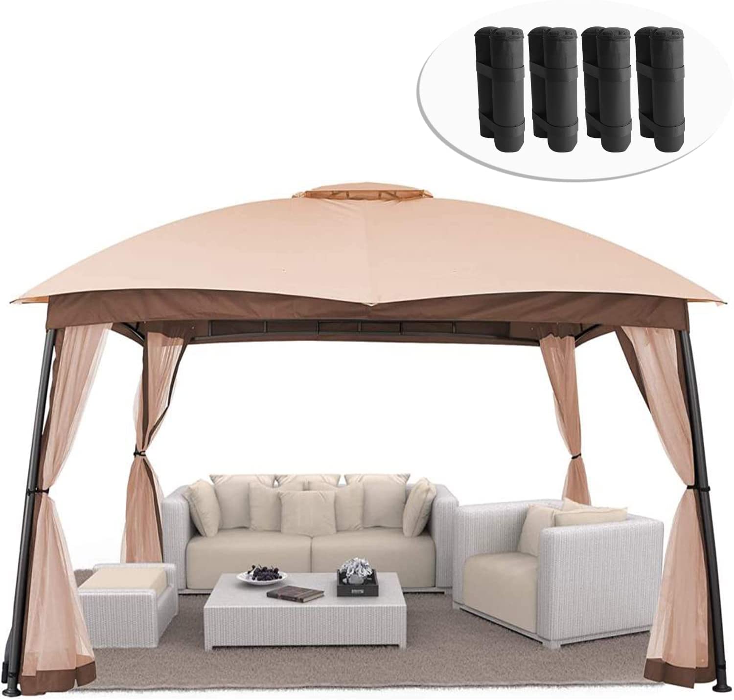 Charmeleon 10X12 Gazebos for Patios with 4 Sand Bags, Outdoor Gazebo Tent with Netting Screen Walls, Heavy Duty Gazebo Canopy with 120 Square Feet of Shade for Garden, Backyard Deck, and Lawns (Khaki)