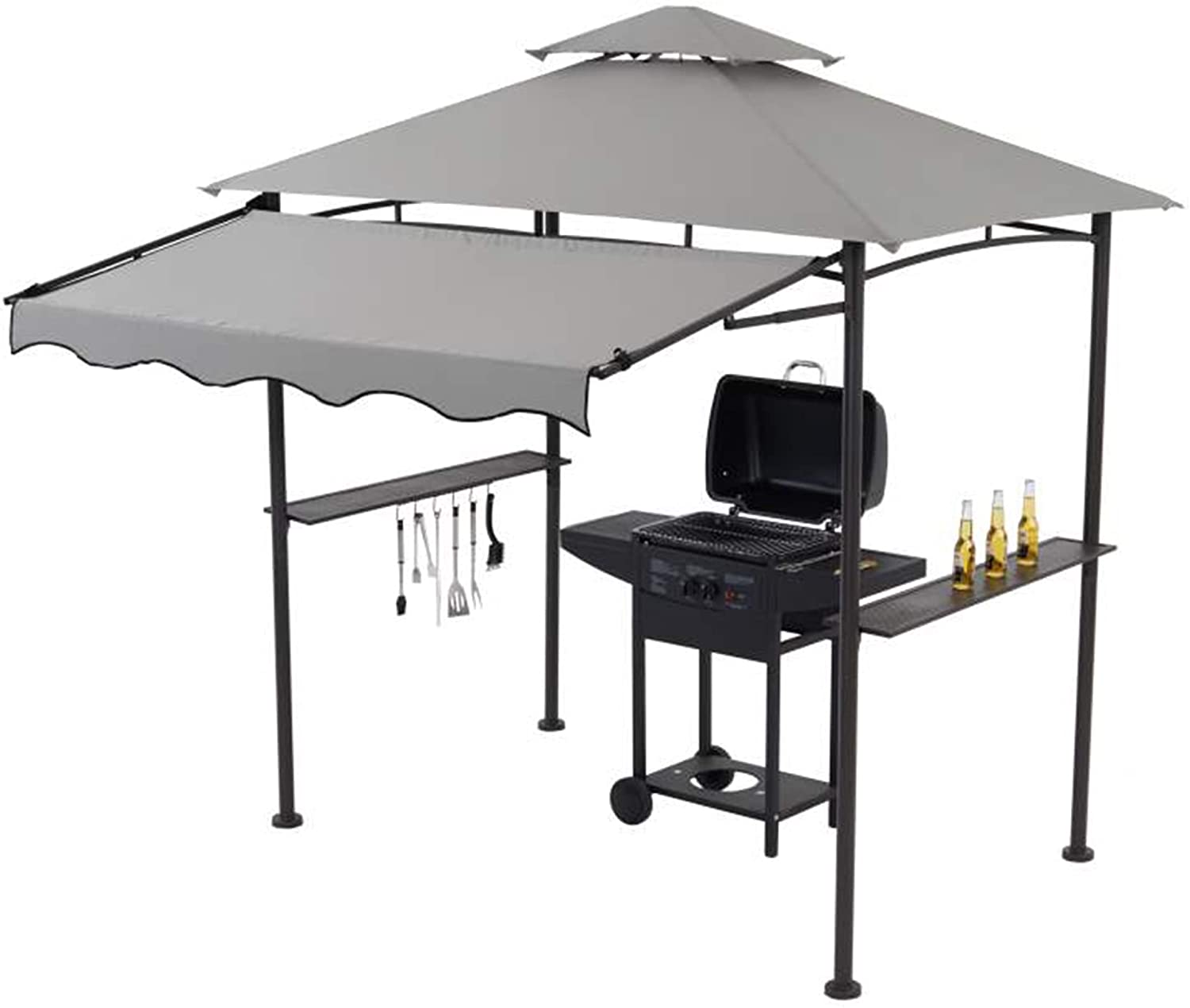 CHARMELEON Double Tiered Grill Gazebo 11 X 5, Outdoor BBQ Patio Canopy Tent with Stretchable Side Awning (Light Grey)
